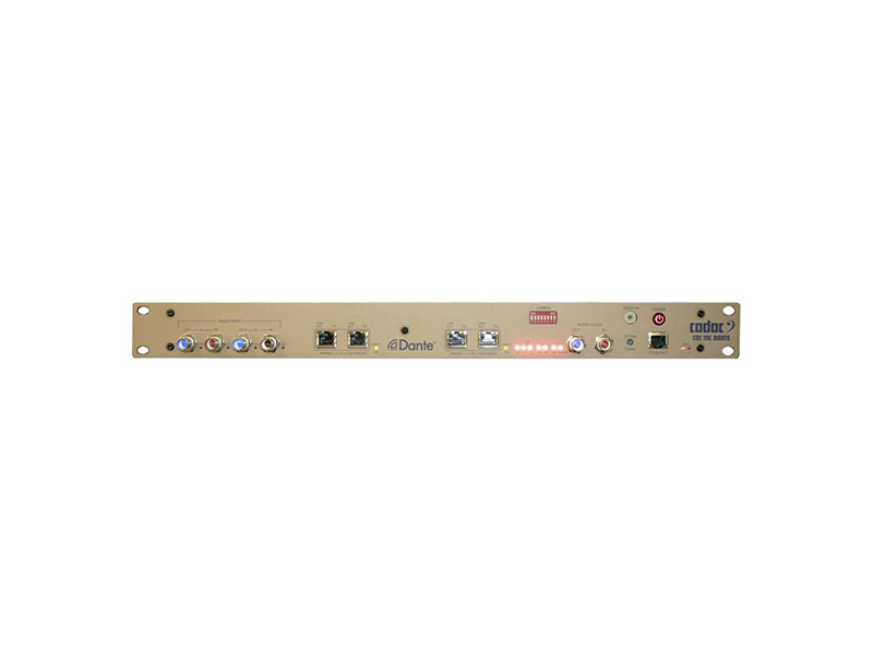 CDC MC Dante 是一个1U的可连接到MegaCOMMS音频网络的Dante转换设备,使Dante单元整合入MegaCOMMS音频网络中。这个单元可以在96kHz或48kHz工作,并且可以处理 64 路输入和输出。